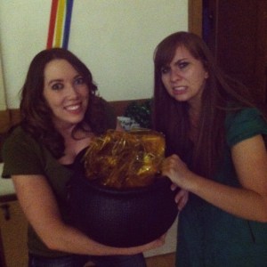 Emily and Courtney "fighting" over the pot of gold at the end of the rainbow.