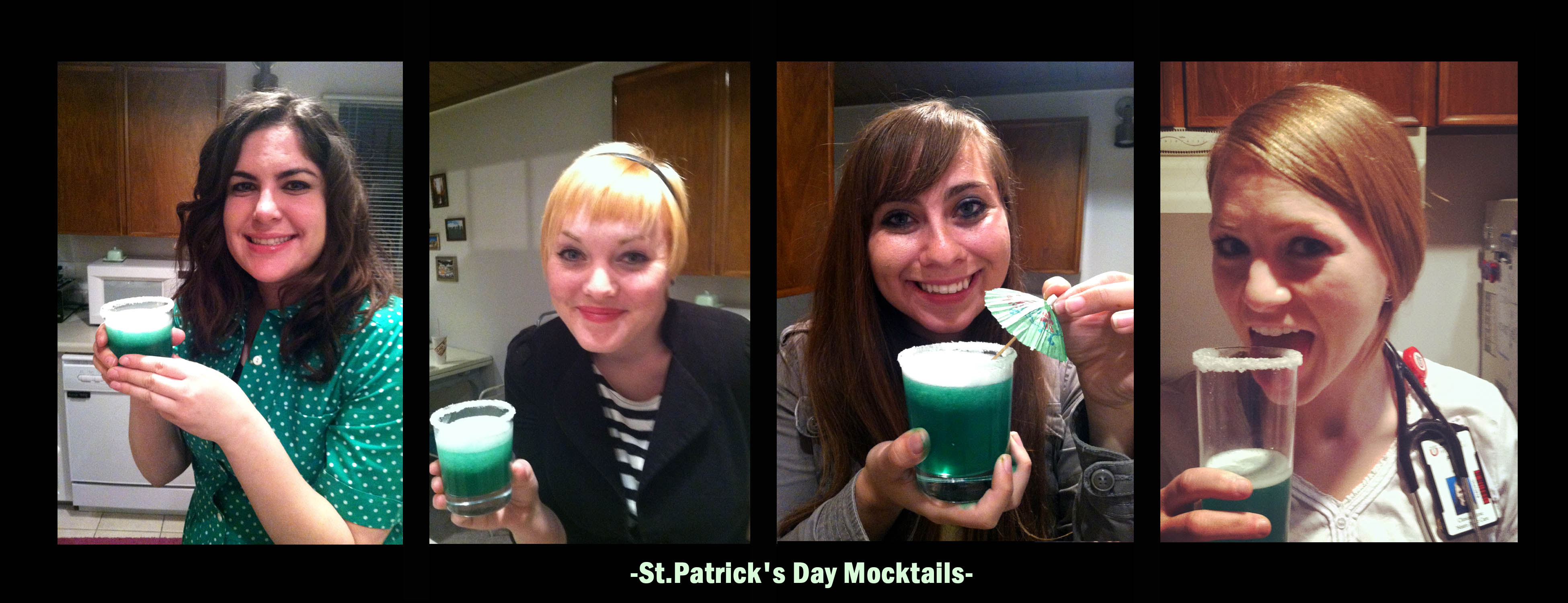 I worked most of the day, but I started the night off with some St.Patrick’s day mocktails. Basically this means we made a super green lime drink and added a frosted rim (even though we realized that no one of us actually had margarita glasses), lol. Our mocktail was just club soda+green margarita mix+ice. We threw in green food coloring to make it extra St.Patrick’s day-ish.