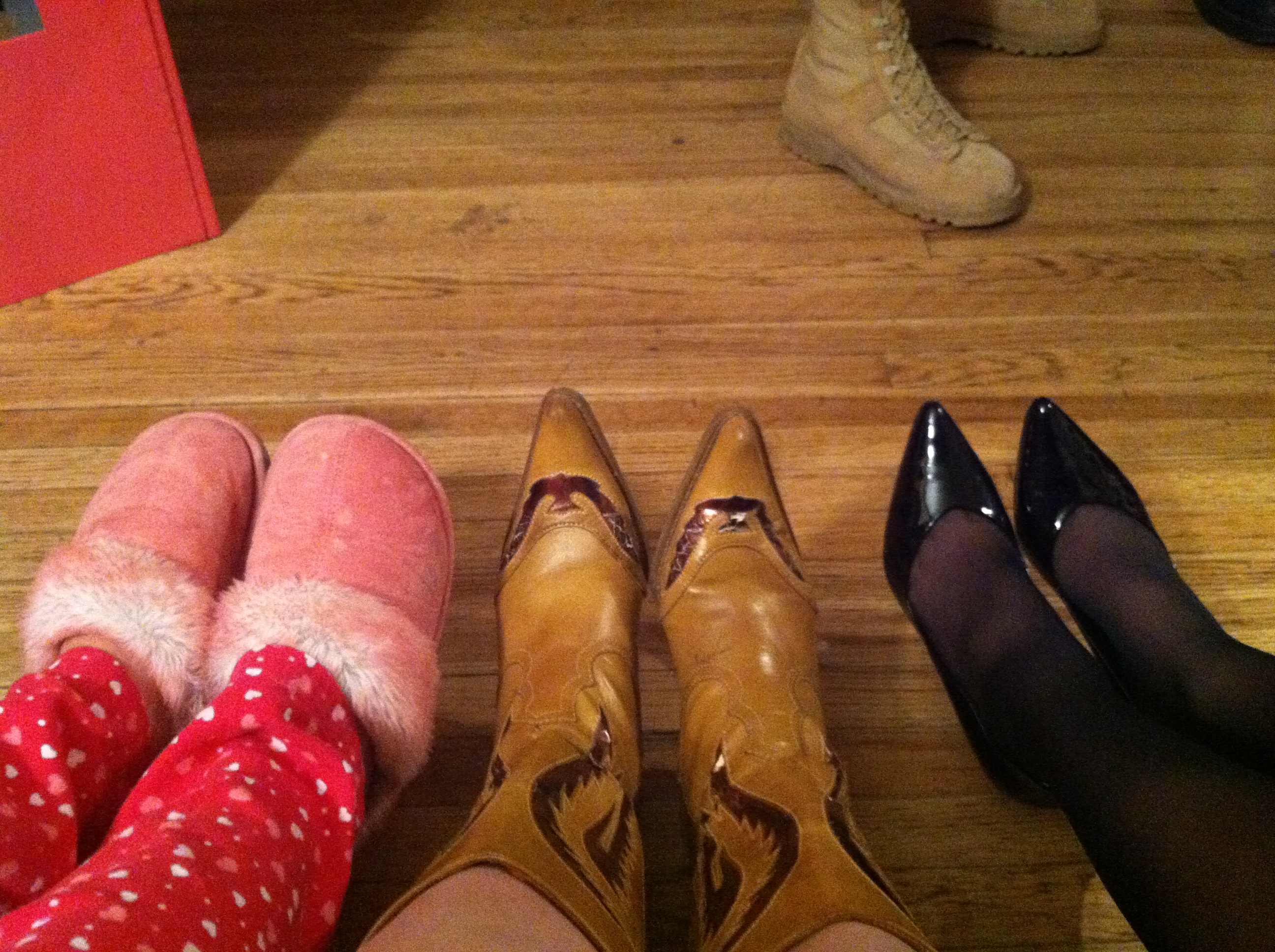 This is the not-so-on-purpose shoe picture I randomly ended up taking while playing with my camera. However I felt it was really fun with all the different color shoes and party dresses going on, so I kept it :)