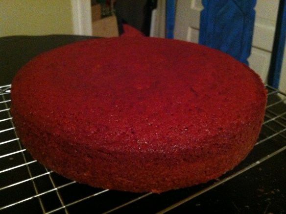 Here is a pre-frosted picture so you can actually see the “redness” of the red velvet cake. Not that that affects the taste, but still, isn’t it pretty? haha