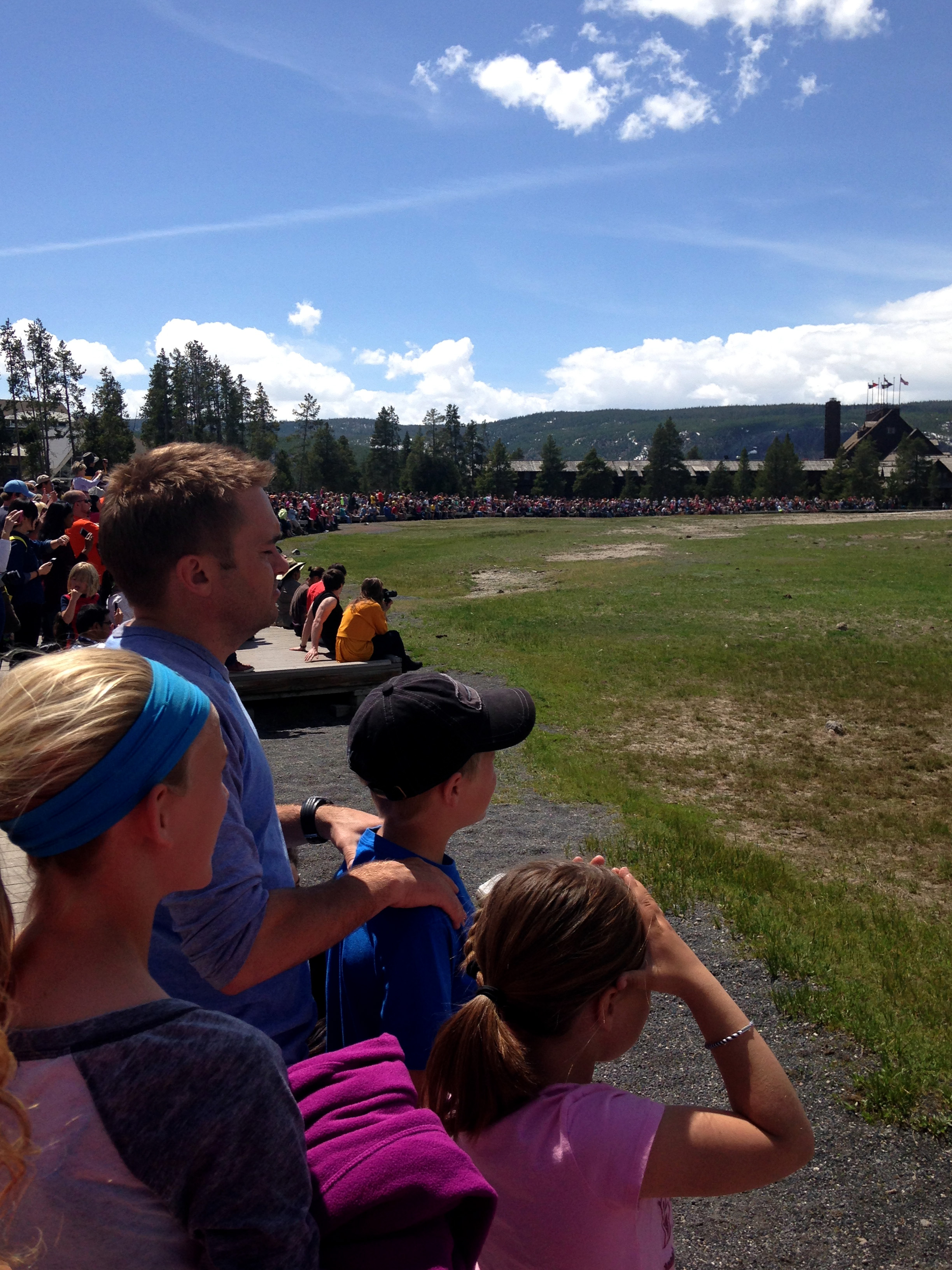 Check out these crowds of anxious people. They wrapped all the way around the geyser viewing area. P.S. Sorry family who was right in front of my crowd shot. I hope this isn’t weird to have a random close up of their profiles!