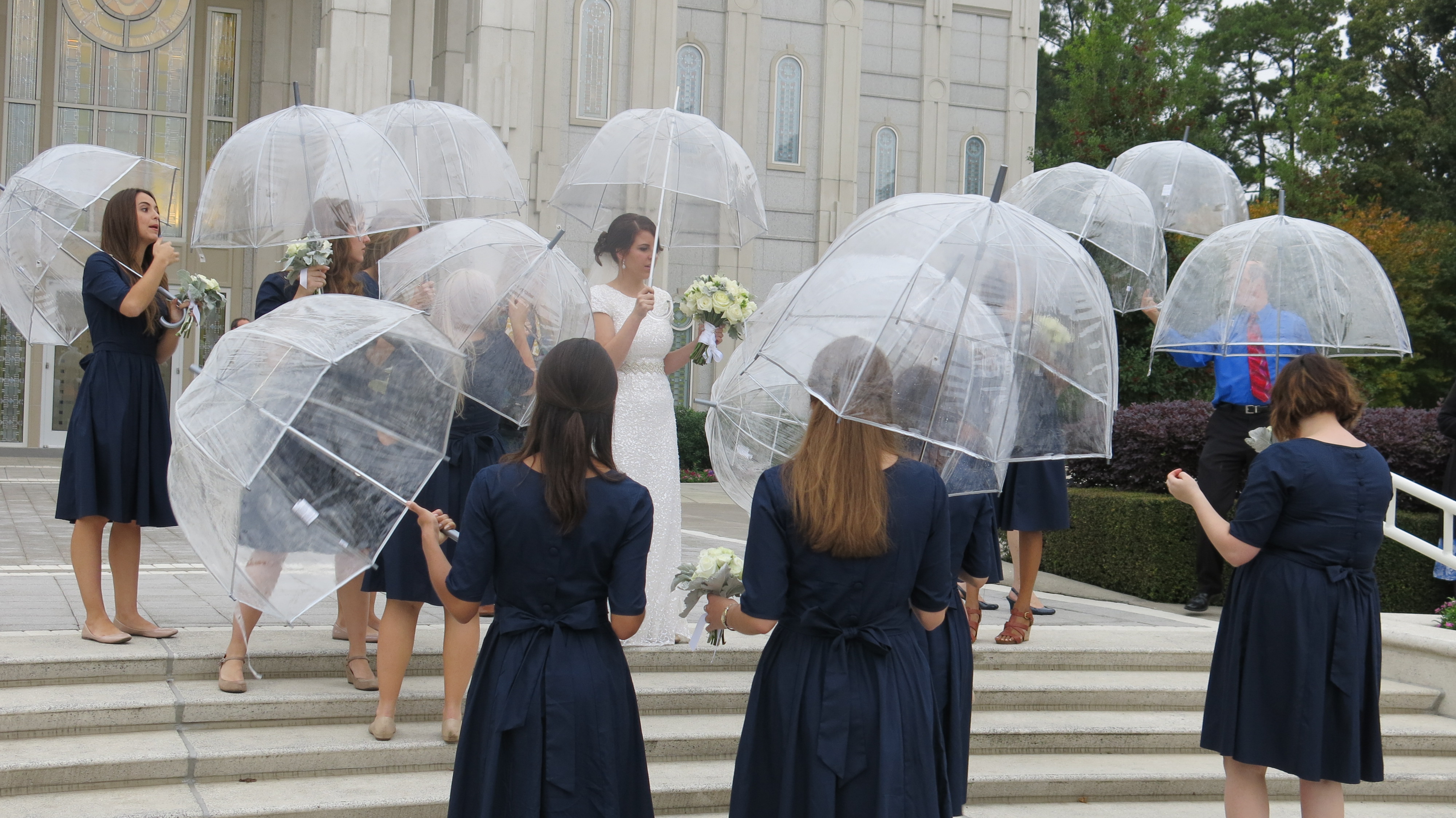 2. In a cruel twist of fate, the forecast called for 100% rain. That is not hyperbole. 100% Texas thunderstorm rain. In a much kinder turn of events this rain turned out to be more of a drizzle most of the day and stopped long enough for pictures. Plus my Mom and Grandma managed to assemble all these cute umbrellas.